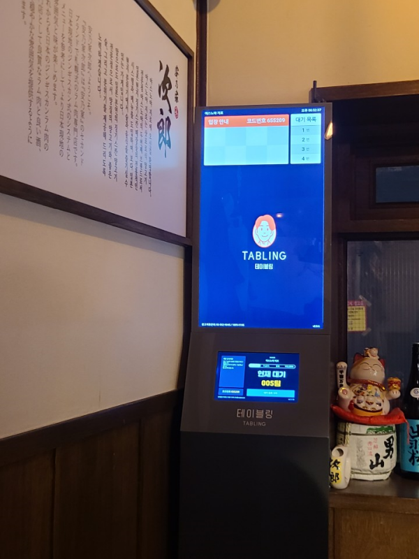 야스노야지로는 예약을 하시는 것이 가장 좋습니다. 5시 타임과 6시 30분 타임은 '에그다이닝'이라는 어플을 통해 예약이 가능합니다. 8시 타임의 경우 테이블링을 통해 웨이팅을 하셔야하는데요. 가게 내부에 테이블링 키오스크가 있습니다.
