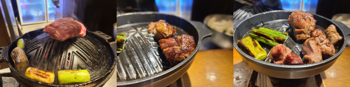 야스노야지로는 간장소스, 와사비, 히말라야 핑크소금, 양배추 피클이 기본적으로 세팅됩니다. 또한 고기를 계속 따뜻하게 유지할 수 있도록, 미니 화로도 앞에 올려주시는데요. 이 점이 매우 좋았습니다.