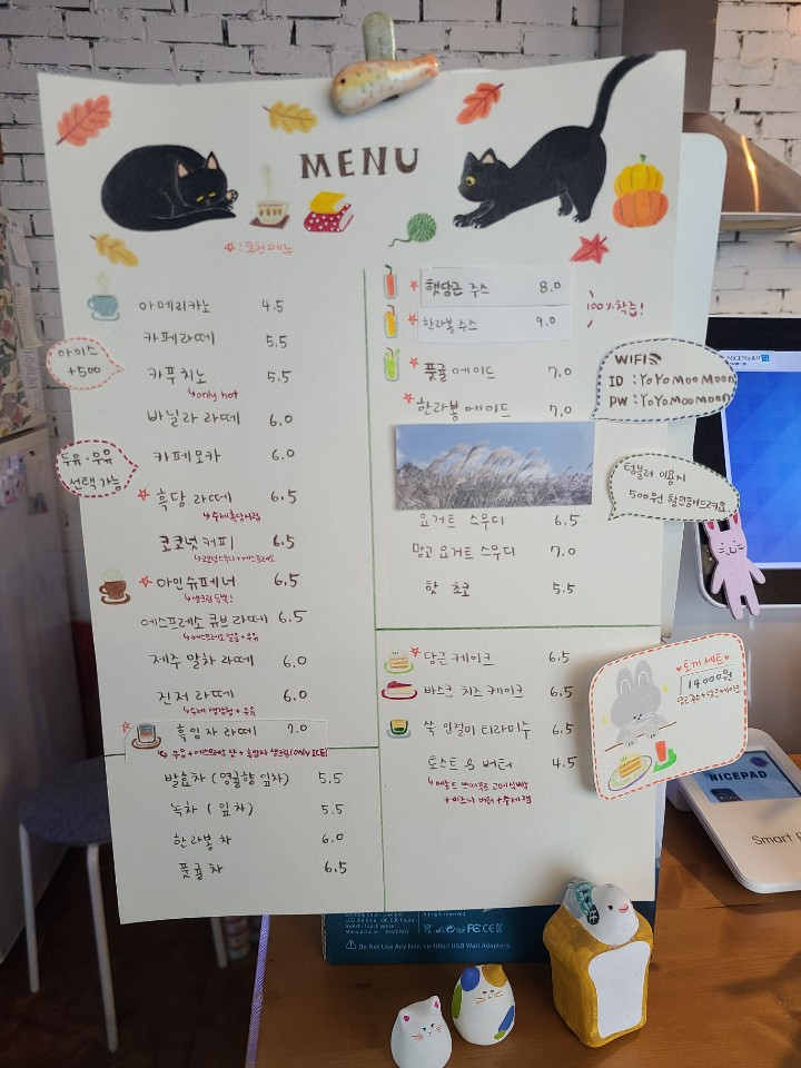 카페 요요무문 가격(메뉴판)