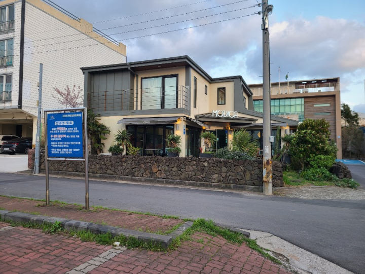 모디카는 제주시 한림읍의 한림종합운동장 바로 앞에 있습니다. 제주 서부에 위치하고 있습니다.