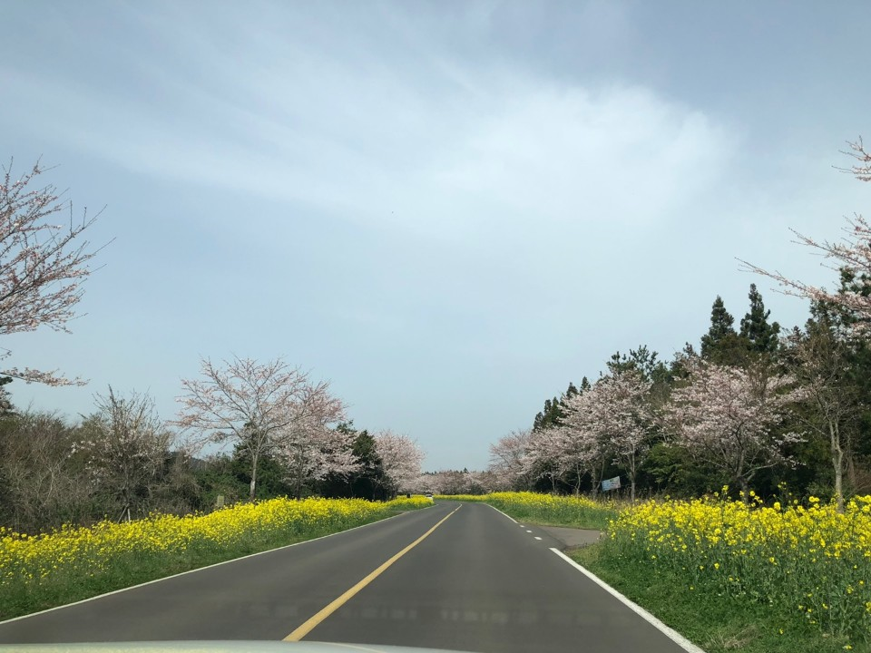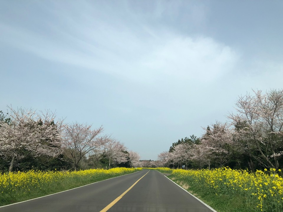 오늘은 제주도의 벚꽃 명소를 소개하겠습니다. 노란색 유채꽃과 핑크색 벚꽃이 정말 아름답게 조화를 이루는 장소인데요. 바로 '녹산로유채꽃도로' 입니다.
