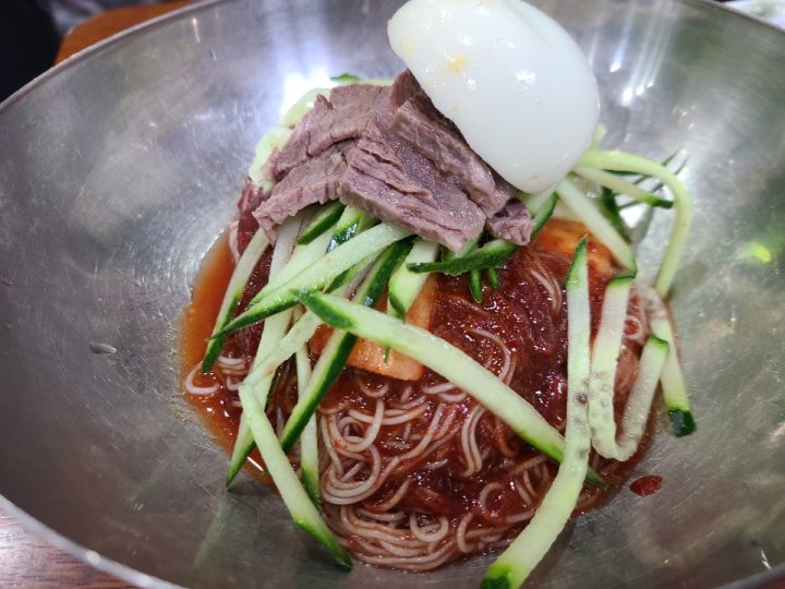 비의 인생맛집이라고 했는데, 그분의 입맛이 과연 엄청까다로운가라는 의문이 들었습니다. 물론 매우 휼륭한 비빔냉면이었습니다. 그러나 인생맛집이라 할 곳은 아니었던 것 같습니다. 달달한 비빔냉면을 좋아하시면, 여기는 좋은 선택지가 될 듯 합니다. 매콤한 스타일의 비냉을 좋아하신다면, 조금 실망하실 수 있습니다.