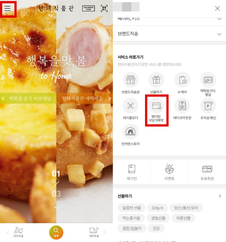 - 예약 정보 : 현대식품관 앱