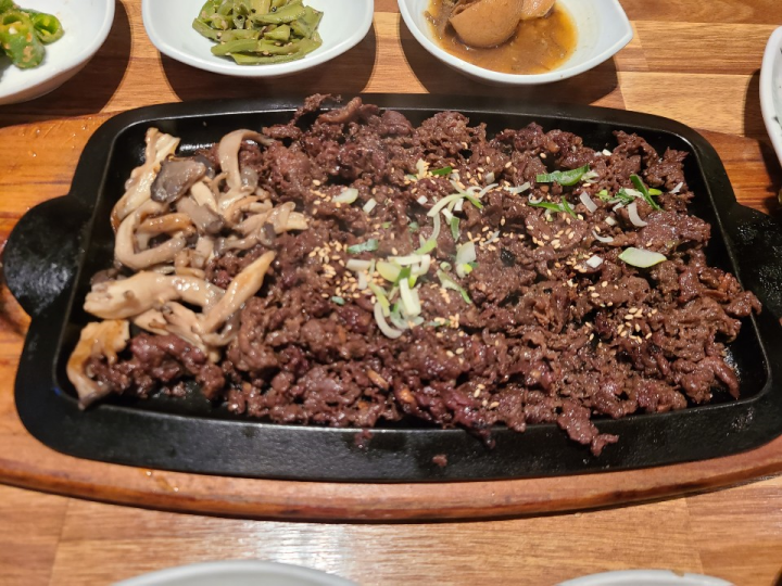바싹불고기가 적당히 달달하면서, 바삭하고 불향도 살짝나서 정말 맛있었습니다. 이게 은근 매력적이어서 숫가락으로 팍팍 퍼먹었는데요. 약간 언양불고기와 맛이 비슷했습니다.