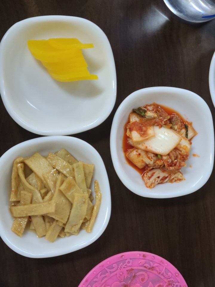 밑반찬은 김치, 오뎅볶음, 단무지로 단촐합니다. 김치는 조금 매운 편입니다.