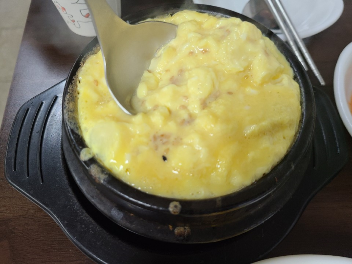 저녁에 먹으면 계란찜을 서비스로 주십니다. 바닥이 살짝 타서 불향이 나서 좋았습니다.