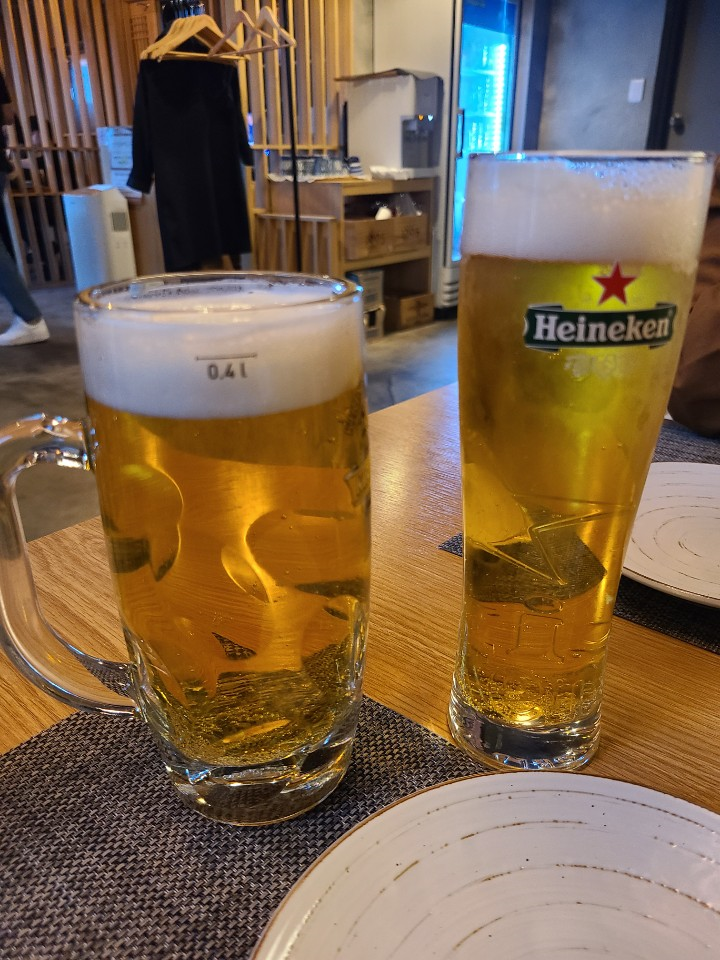 먼저 기린과 하이네켄 생맥주를 시켰습니다.