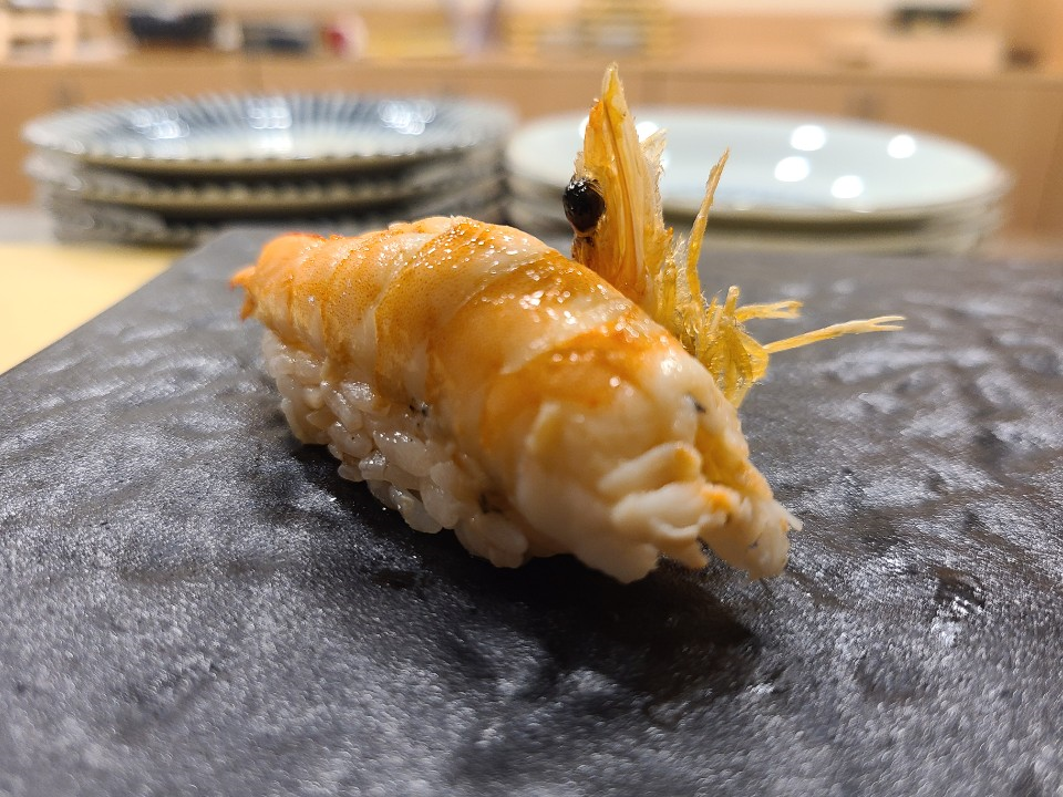 새우초밥에 대가리 튀김을 같이 주십니다.