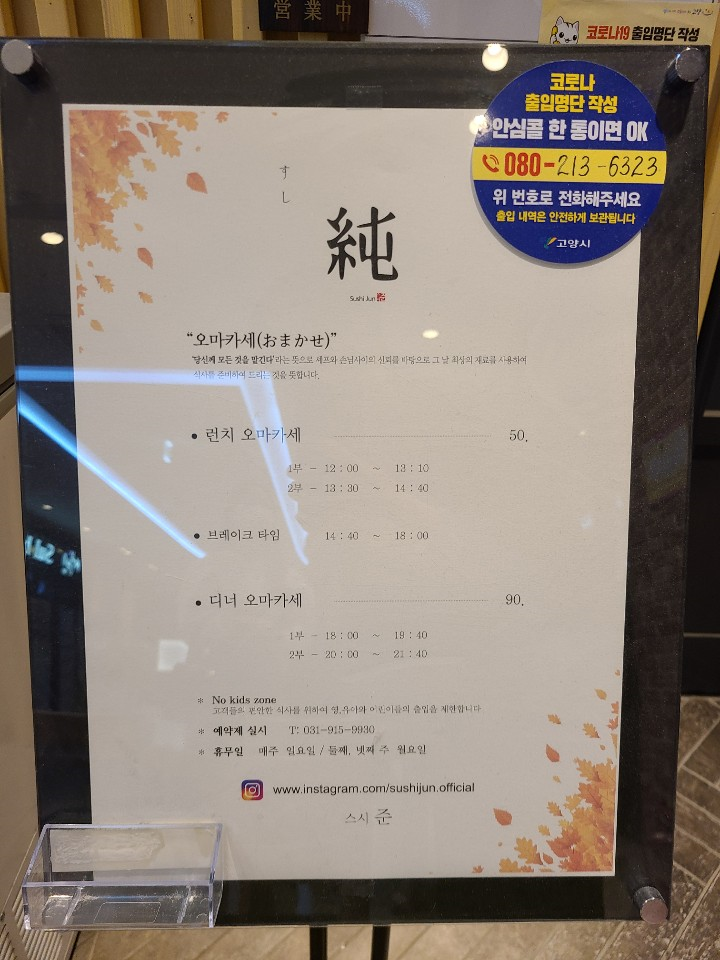 오늘은 일산 킨텍스에 5만원에 즐길 수 있는 스시 오마카세 맛집, 스시준을 소개하겠습니다. 부모님 생신을 맞아, 스시 오마카세집을 예약했는데요. 일산에 오마카세를 검색해보니, 스시준이 괜찮다고해서 예약하고 방문했습니다. 런치는 5만원, 디너는 9만원에 운영되고 있는데요. 과연 런치 구성은 어땠을지, 지금부터 알아보겠습니다.
