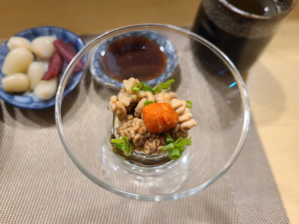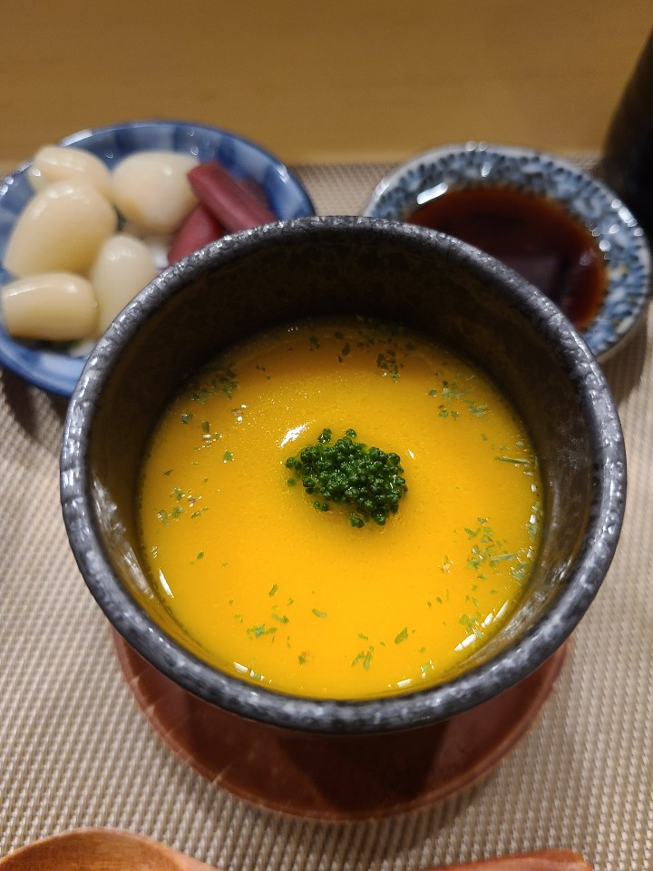 단혹박 퓨레가 올라간 차완무시가 제일 먼저 나옵니다.