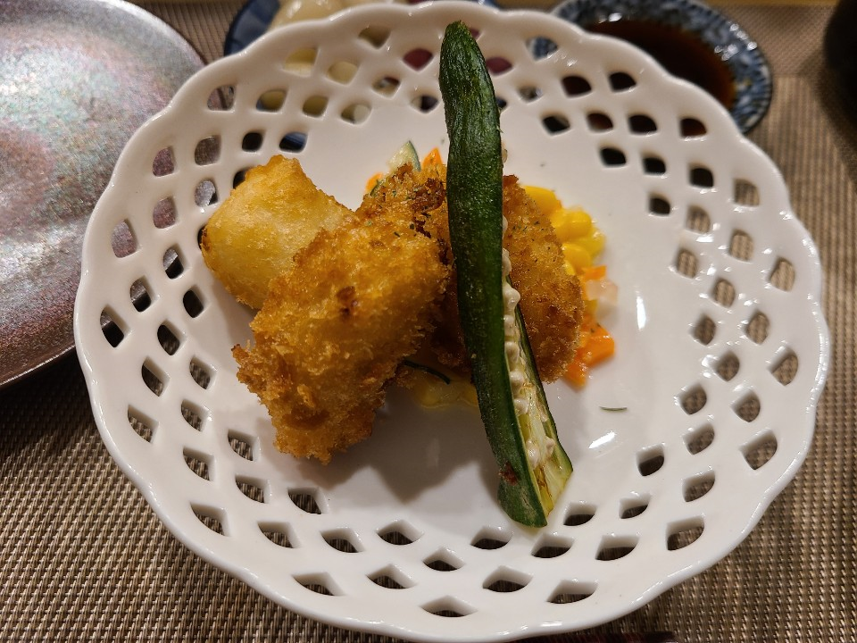 감자고로켓과 우유튀김, 오크라 튀김이 나왔습니다.