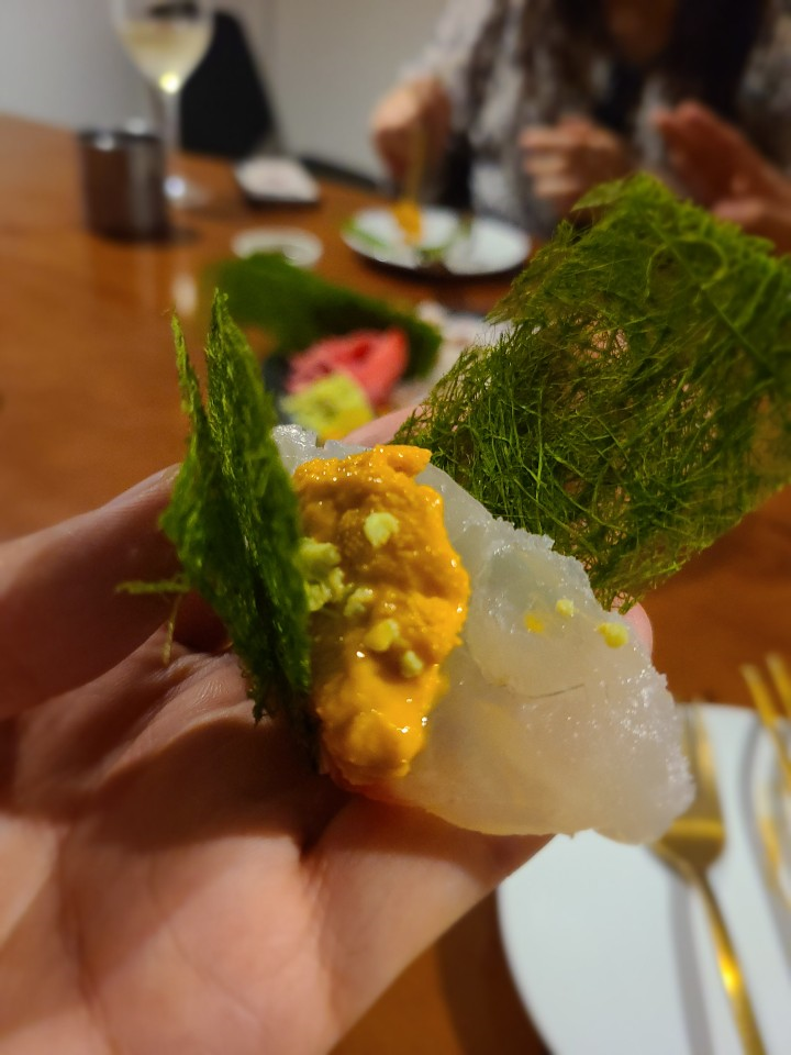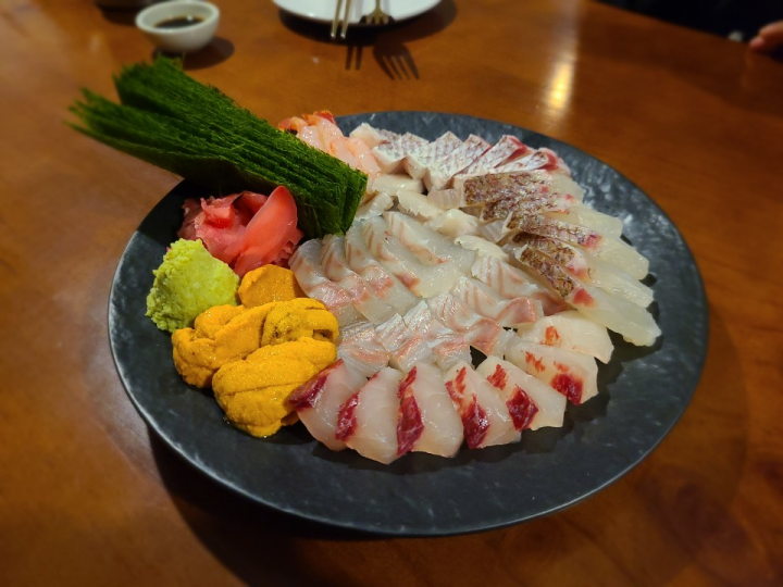 모듬회는 매달 메뉴가 바뀌는 키친오늘에서 한결같이 판매하는 메뉴입니다. 흰살 숙성회의 향연이었는데요. 성게알과 관자도 있었습니다. 일단 제가 회를 그렇게 좋아하지 않는데도, 숙성회라 그런지 감칠맛이 대단했습니다. 그렇다고 느끼하지도 않고, 딱 깔끔함과 감칠맛이 적당히 조화를 이루는 숙성회였습니다. 어떻게 회가 이렇게 맛있지? 라는 생각이 들 정도였습니다.