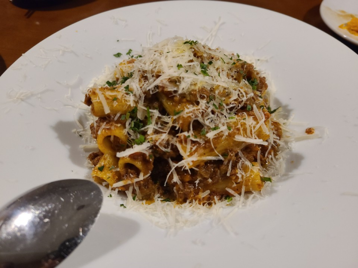 리가토니는 펜네처럼 원통형의 파스타였습니다. 이 메뉴도 거의 매달 판매하는 시그니쳐 메뉴인듯 합니다. 아주 특별하진 않았지만, 맛있는 라구소스 파스타였습니다.