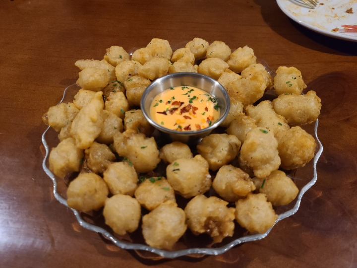 마지막에 조금 아쉬워서, 오징어입 튀김을 시켰습니다. 청양고추 디핑소스에 이빨을 다 제거한 오징어입 튀김이 같이 나옵니다. 솔직히 와인과는 잘 어울리지 않아서 조금 아쉬운 메뉴였습니다. 맥주 안주로는 괜찮을 수도 있으나, 아주 만족스럽지는 않았습니다.