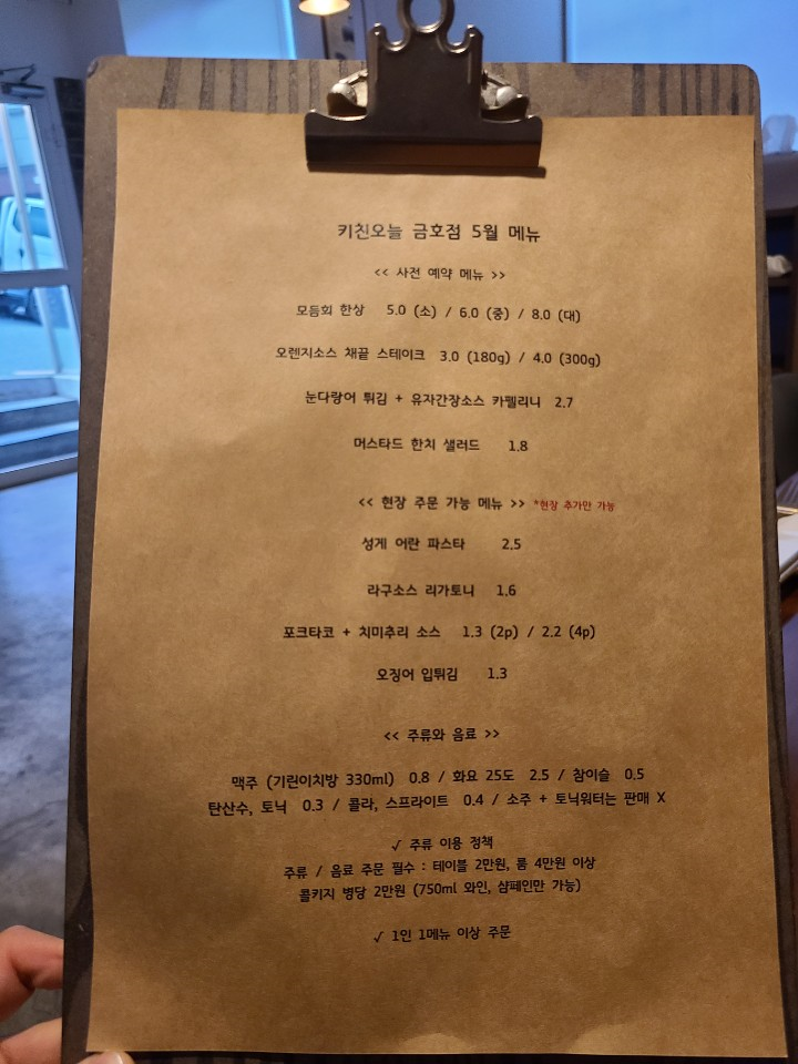 금호동에 예약하기 정말 힘든 술집이 있습니다. 100% 예약제로 매달 변경되는 안주를 판매하는 술집인데요. 좋은 사람들과 맛있는 모듬회, 스테이크, 파스타에 와인을 마시고 왔습니다. 지금부터 키친오늘에 대해서 자세히 알아보겠습니다.