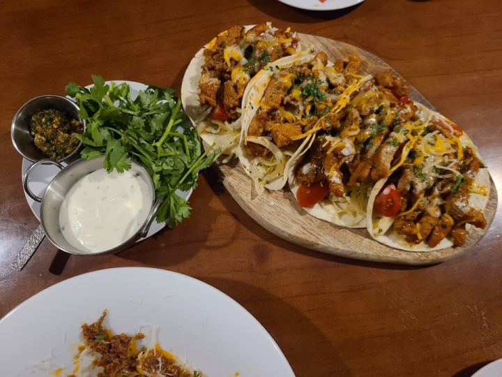 돼지고기가 올라간 타코와 달달한 샤워크림, 허브를 주 재료로 한 치미추리 소스입니다. 고수를 싫어하시지 않으시면, 치미추리 소스가 상당히 매력적입니다. 타코는 한번에 먹기는 어려워서, 먼저 고기를 건져먹고 나중에 소프트 타코로 싸먹으시면 됩니다. 이 메뉴도 정말 맛있었습니다.