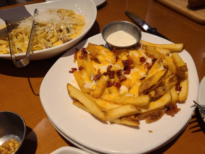 베이비 백 립의 사이드인 감자튀김에 멜티드 치즈를 추가해서, 오지 치즈 후라이로 만들었습니다. 이건 꼭 먹어야 합니다.