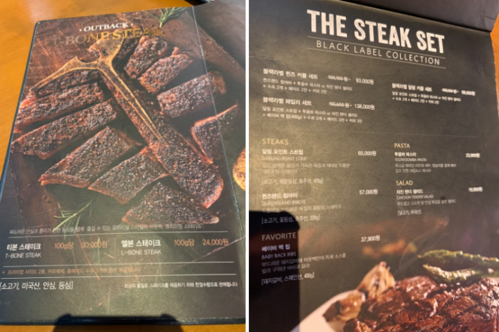 아웃백 스테이크 메뉴판