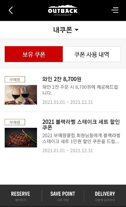아웃백 할인 Tip은 정말 다양합니다. 그 중에 저희가 받았던 방식만 간단하게 설명드리겠습니다.
