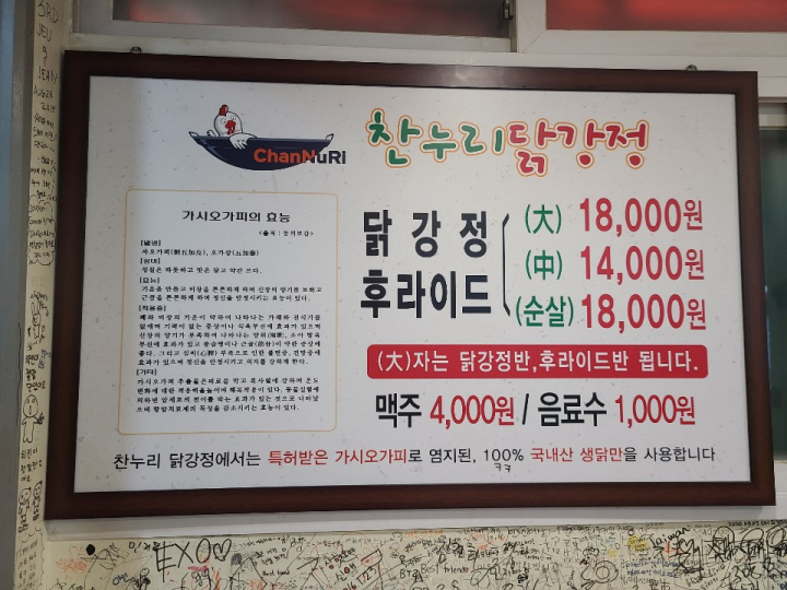 신포 찬누리 닭강정 메뉴판