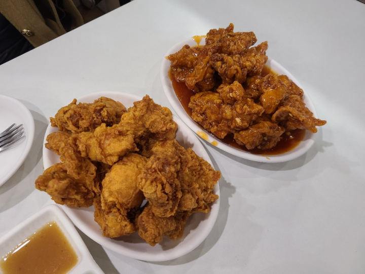 개인적으로 속초의 만석닭강정보다는 신포 닭강정이 더 맛있는 것 같습니다. 더 매콤하고, 달콤한 맛과의 조화가 좋았습니다. 튀김옷도 정말 바삭해서 후라이드도 맛있었습니다.
