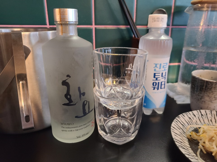 술은 화요 25도와 토닉을 시켜봤습니다. 화요토닉으로 2잔 마시고, 그냥 화요만 마셨는데 이것도 생각보다 괜찮았습니다.