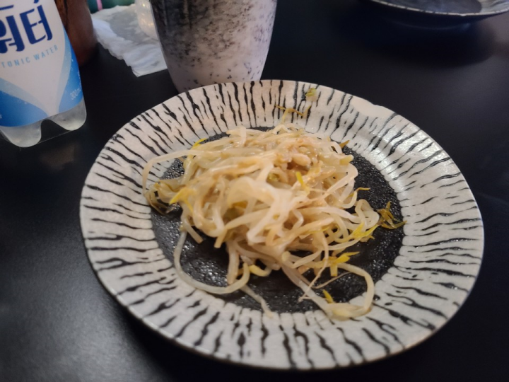 기본 서비스로 숙주무침이 나옵니다. 땅콩 소스가 뿌려져 나와서, 아주 고소하고 짭짤합니다.