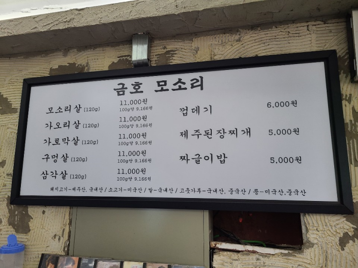 금호 모소리 메뉴판