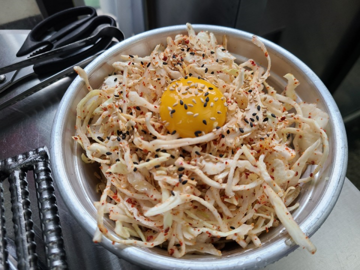 양배추 겉절이도 푸짐하게 주십니다. 약간 달달하면서 매콤하고, 고소한게 정말 맛있습니다.