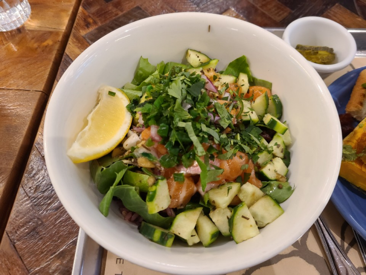 살몬과 각종 야채가 들어간 포케 라이스입니다. 밥은 흙미입니다. 간장 베이스에 참기름이 듬뿍 들어가 가우 고소하고, 산뜻한 맛입니다. 포케를 좋아하시는 분이라면, 누구나 좋아할만한 맛이었습니다.
