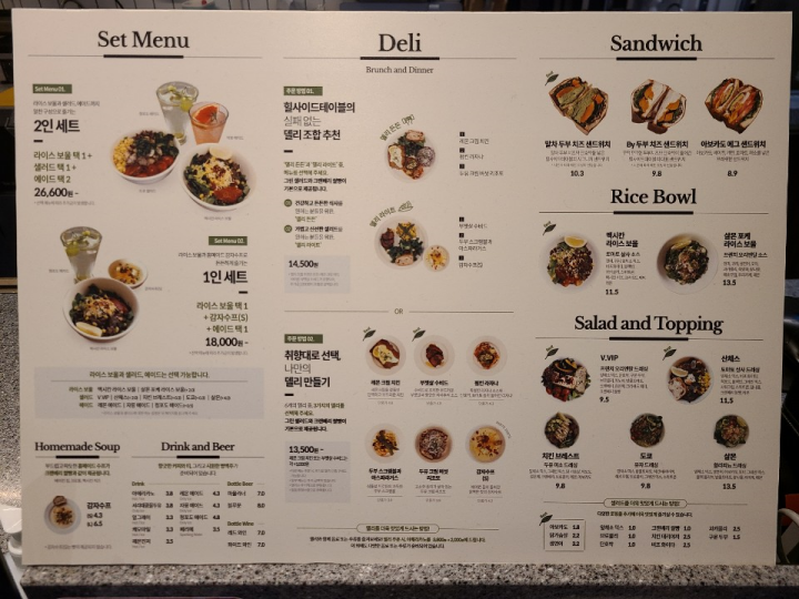 스프와 라이스보울, 샌드위치 등을 판매합니다. 샌드위치는 두부가 들어간 치즈 샌드위치인데, 이런 샌드위치는 다른 곳에서 못본 것 같습니다.