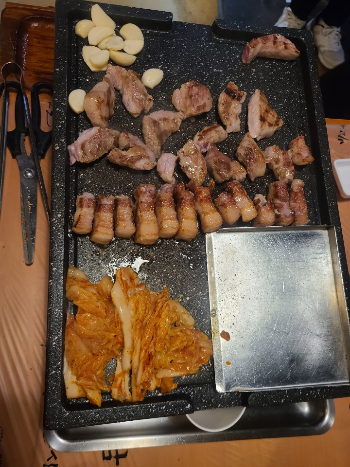 전체적으로 고기는 맛이 좋았습니다. 잡내도 없고 고기질은 역시 좋았는데요. 삼결살 > 목살 > 생갈비살 순으로 맛있었습니다. 사실 유명한 고깃집에 가면 목살이 맛있는 경우가 많은데요. 하남돼지집 본점은 삼겹살이 가장 맛있었고, 나머지 목살과 생갈비살은 그냥 그랬습니다.