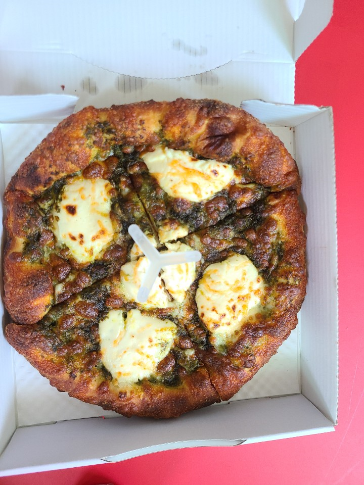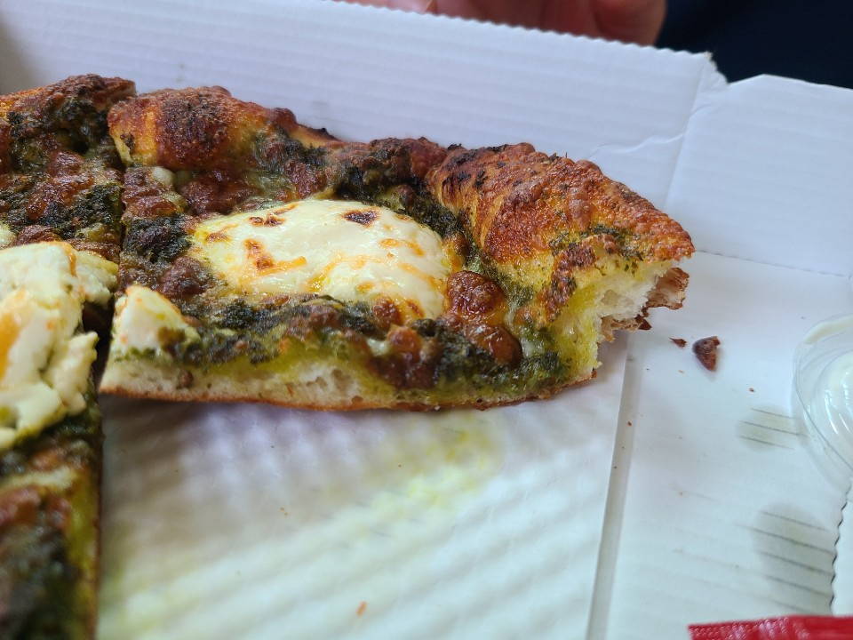 레전드 피자는 바질페스토와 마스카포네 치즈가 토핑으로 올라간 피자입니다. 고소한 바질페스토와 달달한 마스카포네 치즈가 아주 매력적인 조화를 이루는 피자인데요. 이 메뉴는 땡스피자에서도 먹어봐서 익히 맛을 알고있었습니다. 아주 맛있었습니다.