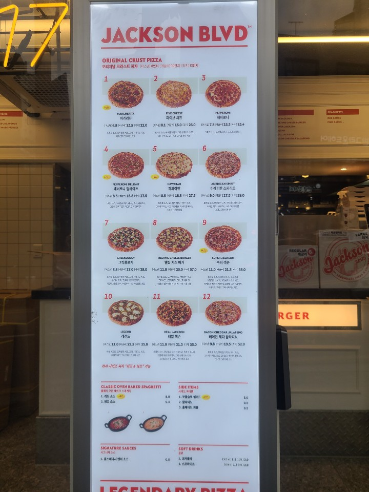 잭슨피자 메뉴판