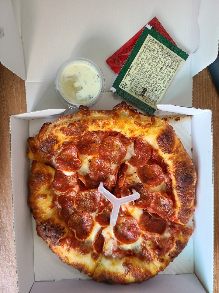저는 1인 피자인 P 사이즈로 레전드 피자와 페퍼로니 피자를 먹어봤습니다.