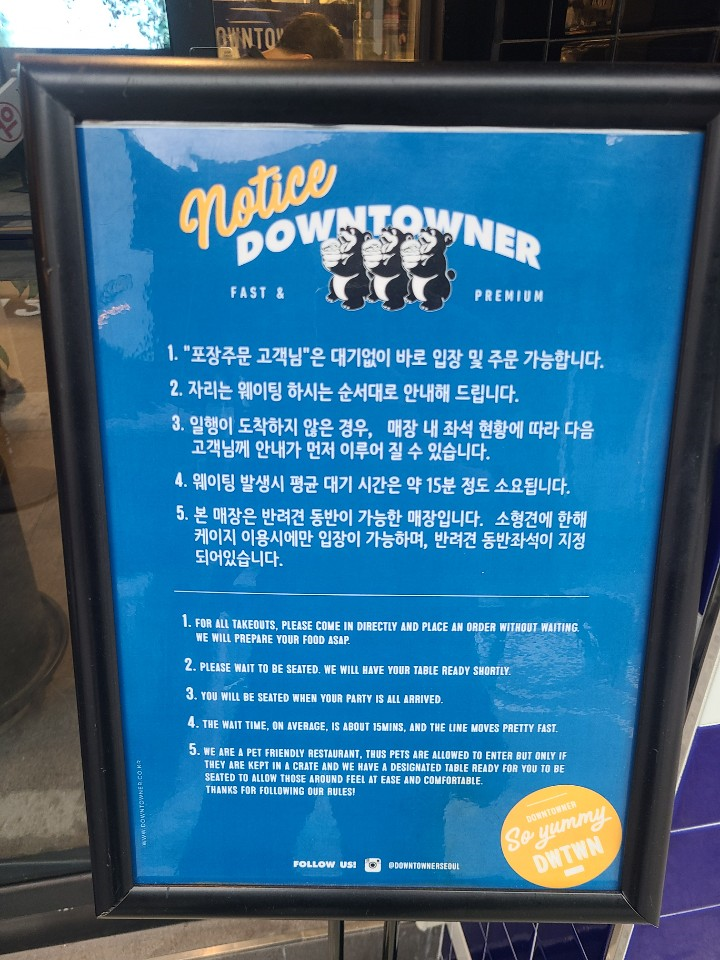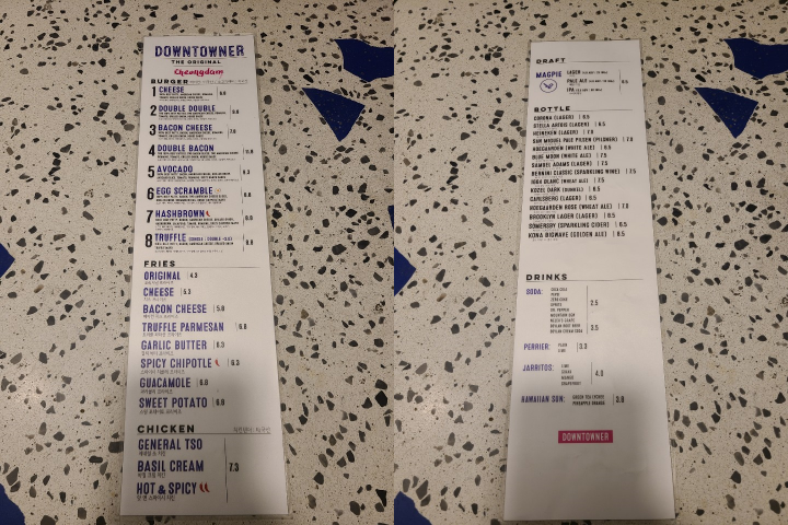 다운타우너 청담 메뉴판