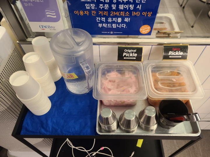 셀프바에는 2종류의 피클이 있습니다. 일반 피클과 매운 피클인데요. 개인적으로 일반 양파 피클이 더 맛있었습니다. 매운 것은 조금 이국적인 맛이 납니다.