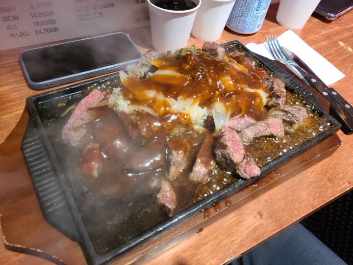하지만, 고기는 먹을만 했는데요. 이 가격에 이정도 사이즈의 스테이크를 먹을 수 있는게 좋았습니다. 다양한 소스를 찍어서 고기를 먹으니 좋았습니다.