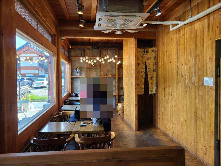카페 볼가심 내부에는 큰 창이 있어서, 북한산 뷰를 감상하기 좋습니다. 내부는 목조로 된 한옥 건물인데요. 우드톤이 따뜻해서 좋았습니다.