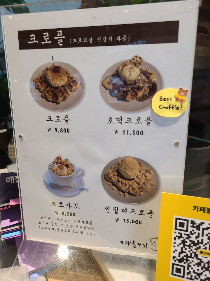 카페볼가심은 음료 종류가 다양한데요. 커피 메뉴 뿐만 아니라, 소다와 스무디, 차, 라떼 메뉴도 있습니다. 크로플도 판매하고 있습니다.