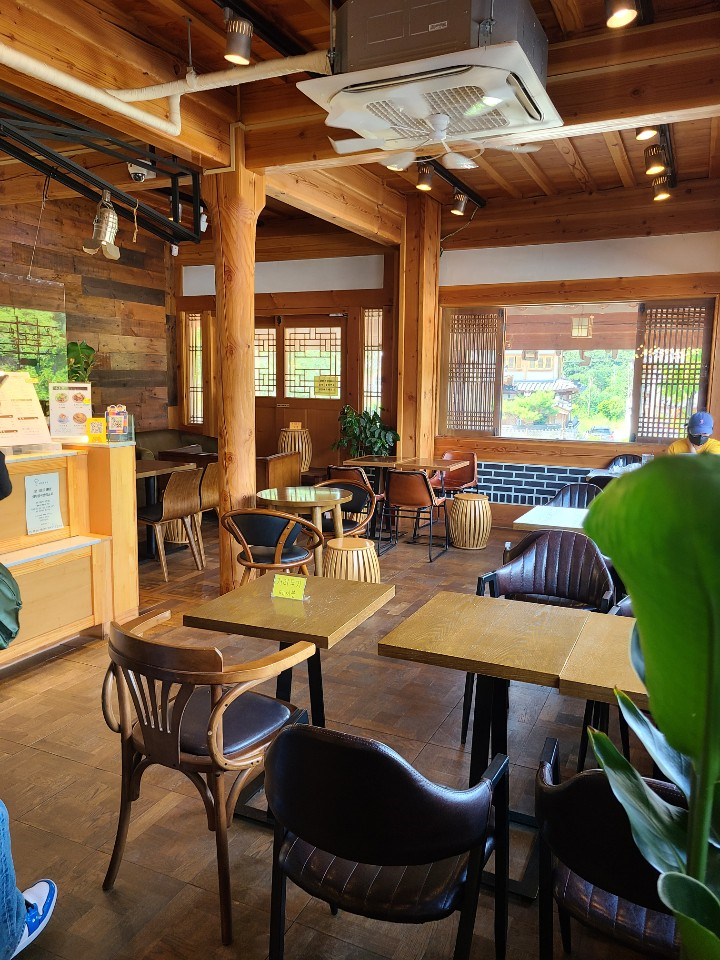 카페 볼가심 내부에는 큰 창이 있어서, 북한산 뷰를 감상하기 좋습니다. 내부는 목조로 된 한옥 건물인데요. 우드톤이 따뜻해서 좋았습니다.