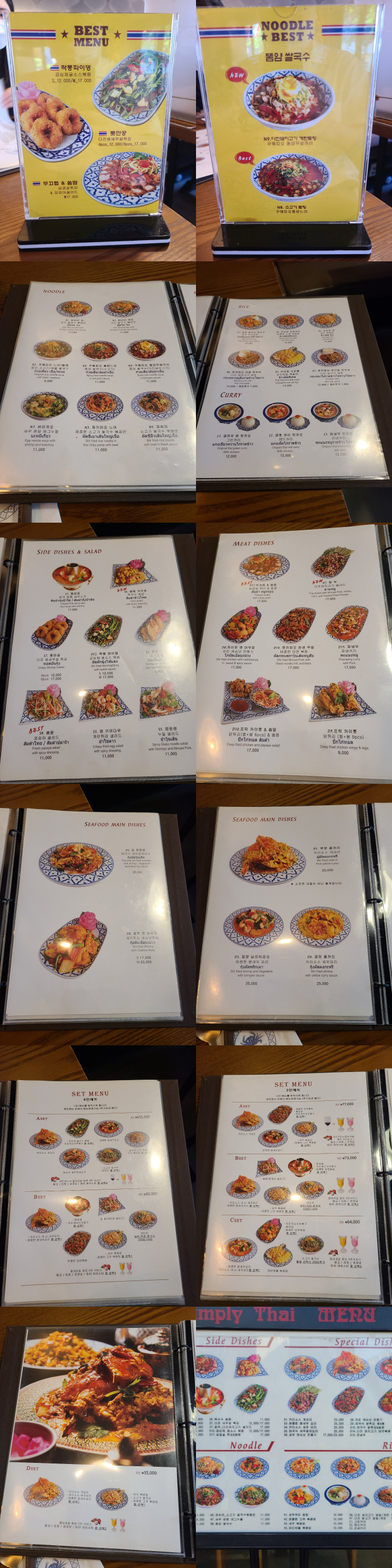 심플리타이의 메뉴는 정말 다양합니다. 우리가 아는 태국음식이 전부 다 있다고 봐도 됩니다. 세트메뉴도 있어서, 다양한 음식을 할인된 가격에 즐길 수도 있습니다.