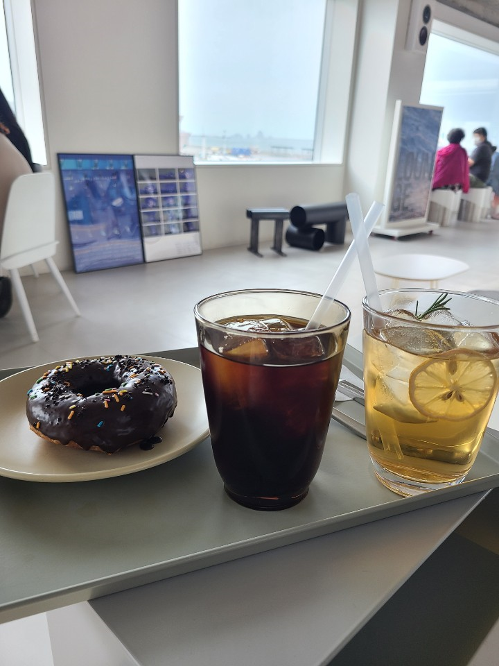 저희는 도넛과 콜드브류, 백포도 라임주스를 시켰습니다. 도넛은 달달해서 콜드브류와 잘 어울렸습니다. 백포도 라임주스는 엄청 달았습니다. 달달한 음료를 좋아하신다면 추천드립니다.