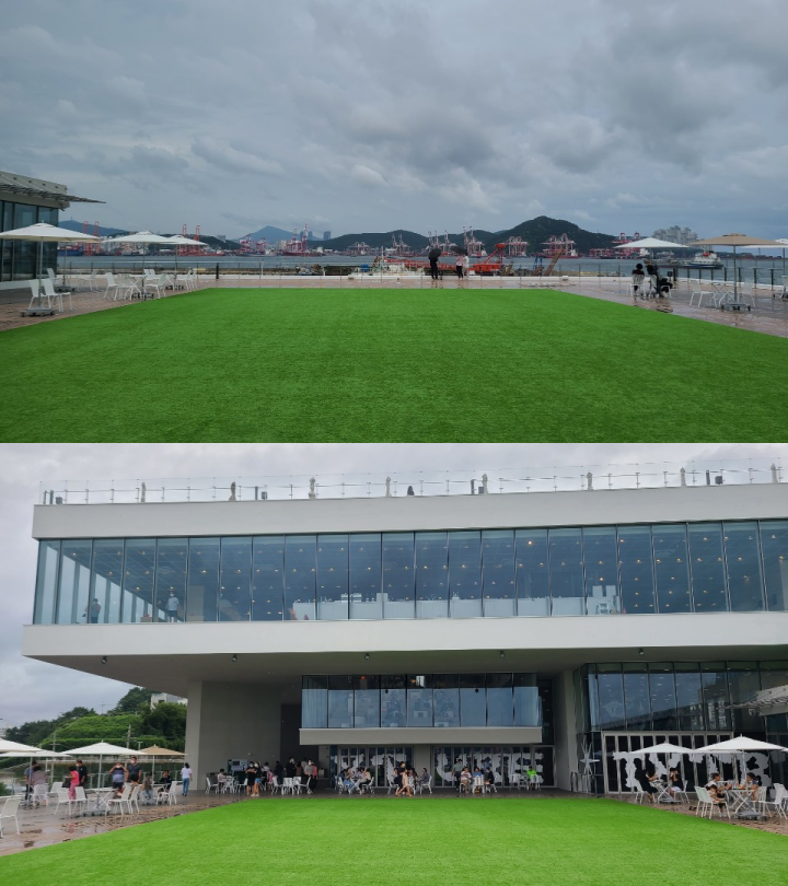 스크랩에서 나와서 다리를 건너니 피아크가 있었습니다. 오션뷰는 피아크가 더 좋았습니다. 비만 안온다면 여기도 아주 좋은 공간일 것 같습니다. 비가와도 실내에서 바다를 통창으로 볼 수 있어서, 실내 데이트 코스로 안성맞춤인듯 합니다.