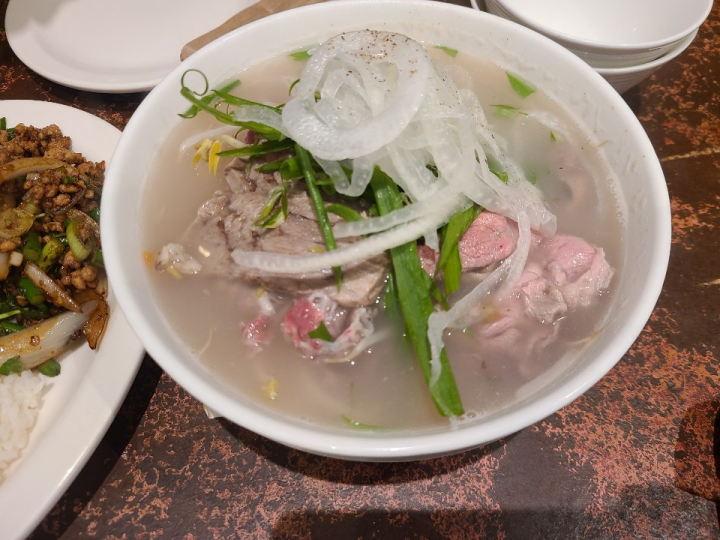 쌀국수에 고기가 처음에는 안힉혀져 나옵니다. 약간 샤브샤브처럼, 국물에서 서서히 익어가는 소고기가 정말 맛있었습니다. 쌀국수 국물은 아주 진한 맛은 아니었는데요. 적당한 국물의 베트남식 쌀국수였습니다. 깔끔한 국물맛이었는데, 우리가 익히 아는 약간 향신료 맛이 나는 베트남 쌀국수 국물은 또 아니었습니다. 색부터 약간 희어멀건 해서, 뭐라 표현하긴 애매하지만, 맛은 있었습니다.