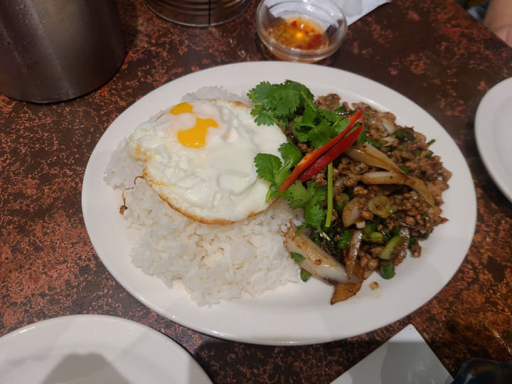 효뜨 돼지고기 덮밥이 정말 맛있었습니다. 태국음식 중 바질과 돼지고기가 들어간 무쌉이라는 음식과 비슷했는데요. 무쌉에 비해서는 달달한 맛이 더 있었습니다. 이 맛은 한국식으로 완벽히 해석된 상수동 뭄알로이의 무쌉과 상당히 유사했습니다. 국물이 없이 건조하게 볶아진 돼지고기에 약간 날리는 밥과 함께 먹으면 대존맛입니다.