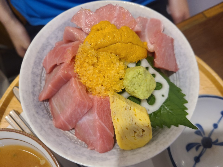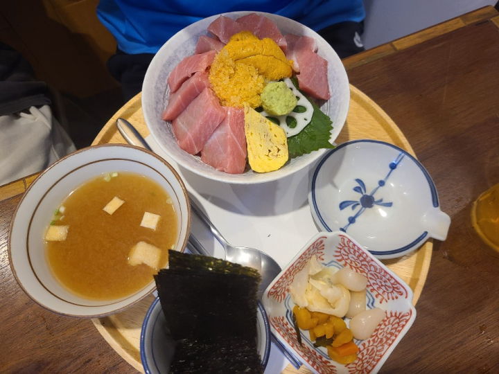 함께 간 친구가 시킨 우니도로동입니다. 신선한 우니와 참치 뱃살인 도로가 올라가 있습니다. 전체적으로 느끼할 수 있는 조합이나, 아주 맛이 좋았다고 합니다. 저는 우니를 살짝 먹어봤는데, 정말 부드럽고 비리지도 않고 맛있었습니다. 물론 가격은 어무무시하지만, 어디가서 이 가격에 이만한 퀄리티의 우니와 도로를 먹을 수 없을 것 같습니다.