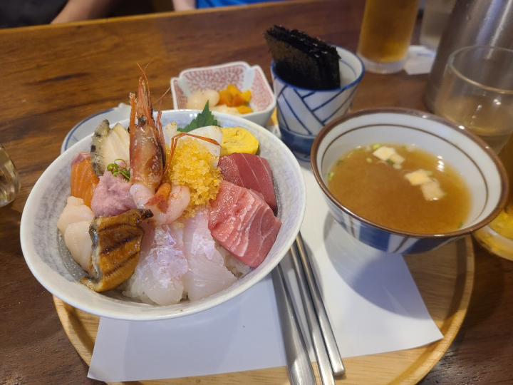 다양한 해산물 덮밥 메뉴를 판매합니다. 카이센동뿐만 아니라, 신선한 성게알이 올라간 덮밥, 참치가 올라간 덮밥, 사케동 등을 판매하고 있습니다.