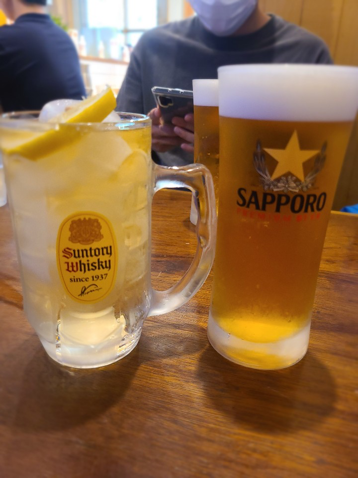 카이센동만 먹기 아쉬워, 함께 방문한 지인들이 선토리 하이볼과 삿포로 생맥주를 시켰습니다. 삿포로 생맥주는 400ml에 7천 원으로 상당히 비싼편입니다.
