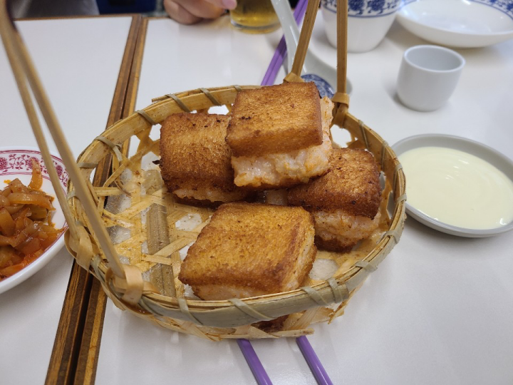 언제나 맛있는 멘보샤를 시켜봤습니다. 멘보샤는 조리시간이 정말 중요한데요. 타지않고 적절히 새우가 익을 정도로 바삭하게 튀겨져 나왔습니다. 함께 나오는 마요소스와 찍어먹으면 맥주 한잔 꿀딱입니다.